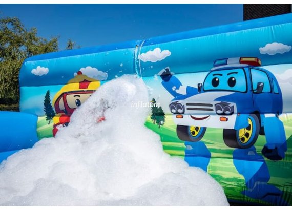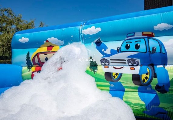 Boble Arenaen er udstyret med skumoskyder i bagvæggen, så du hurtigt kan fylde den med skum. Formen sikrer, at så meget skum som muligt bliver inde i Arenaen.
