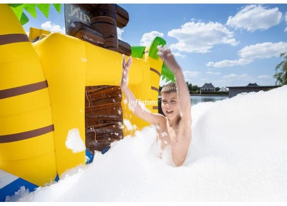 Boble Arenaen er udstyret med skumoskyder i bagvæggen, så du hurtigt kan fylde den med skum. Formen sikrer, at så meget skum som muligt bliver inde i Arenaen.