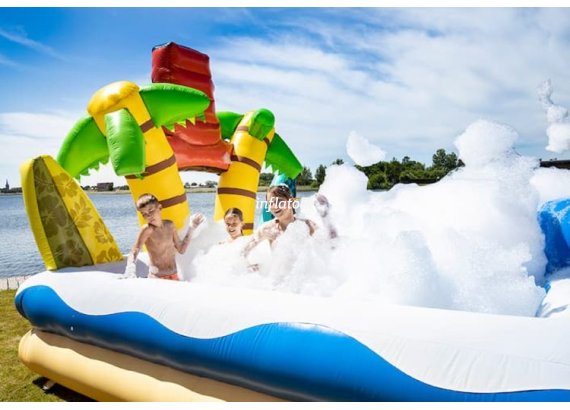 Boble Arenaen er udstyret med skumoskyder i bagvæggen, så du hurtigt kan fylde den med skum. Formen sikrer, at så meget skum som muligt bliver inde i Arenaen.