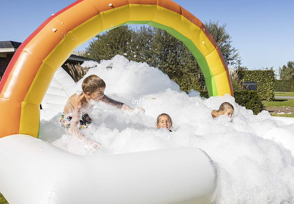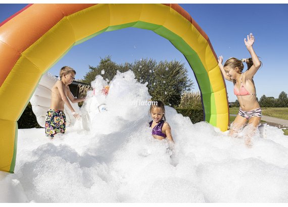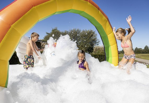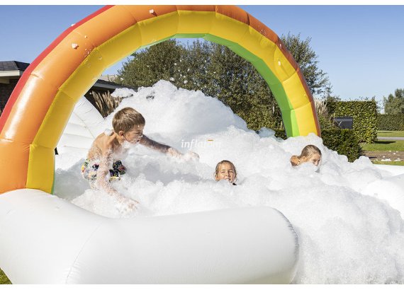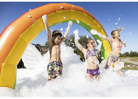 Boble Arenaen er udstyret med skumoskyder i bagvæggen, så du hurtigt kan fylde den med skum. Formen sikrer, at så meget skum som muligt bliver inde i Arenaen.