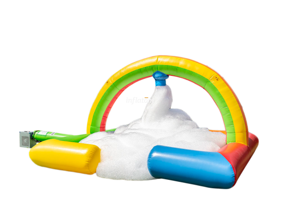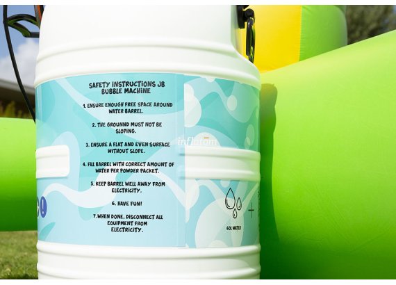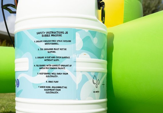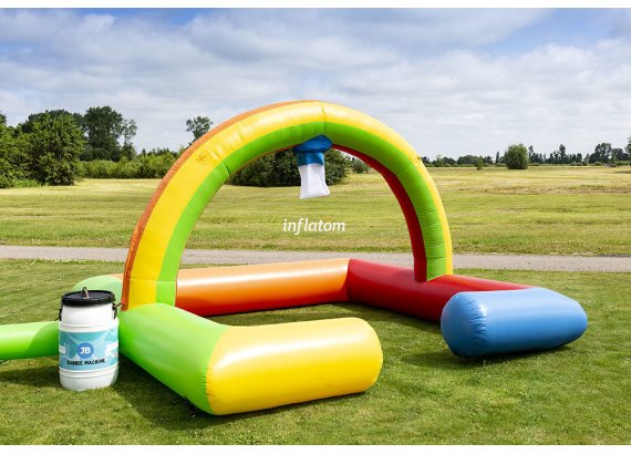Boble Arenaen er udstyret med skumoskyder i bagvæggen, så du hurtigt kan fylde den med skum. Formen sikrer, at så meget skum som muligt bliver inde i Arenaen.